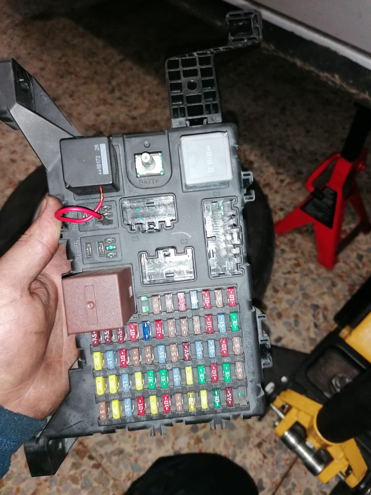 Tienes razón esta justo detrás del guarnecido donde está el tirados del capot, es una masa con 2 cables y se ve todo OK, ahora también se enciende el aviso de fallo de control de estabilidad y fallo de control de velocidad, mire los pulsadores de los pedales y en principio esta todo OK, así que no se si será todo del módulo de confort.