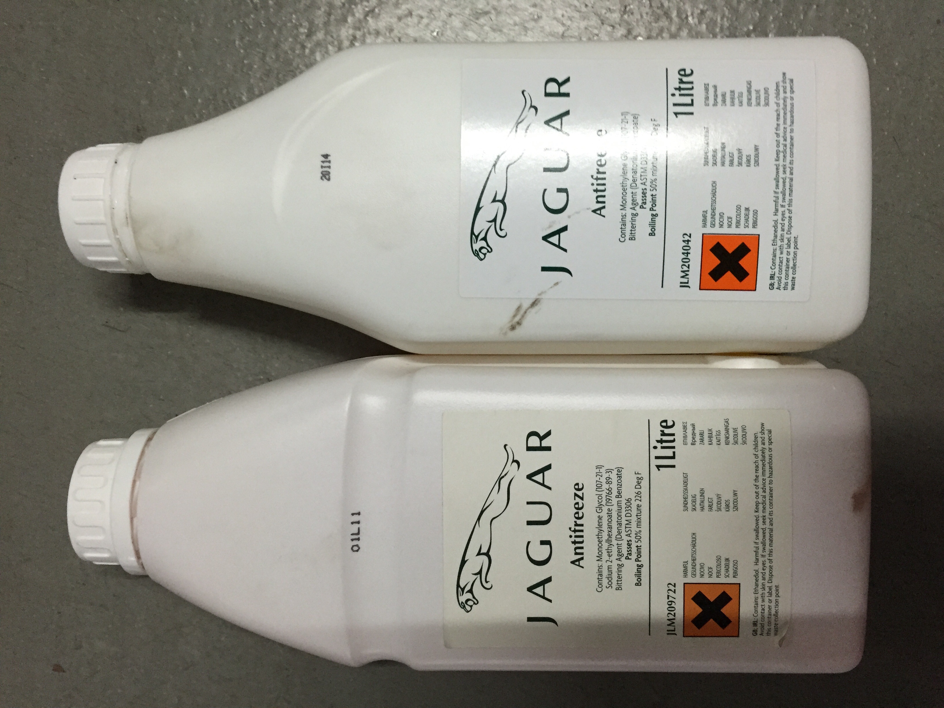 La cosa es que el anticongelante que le han echado es uno amarillo fluorescente original jaguar con referencia JLM204042, y el que ha llevado siempre es el típico naranja fluorescente que es la referencia JLM209722.