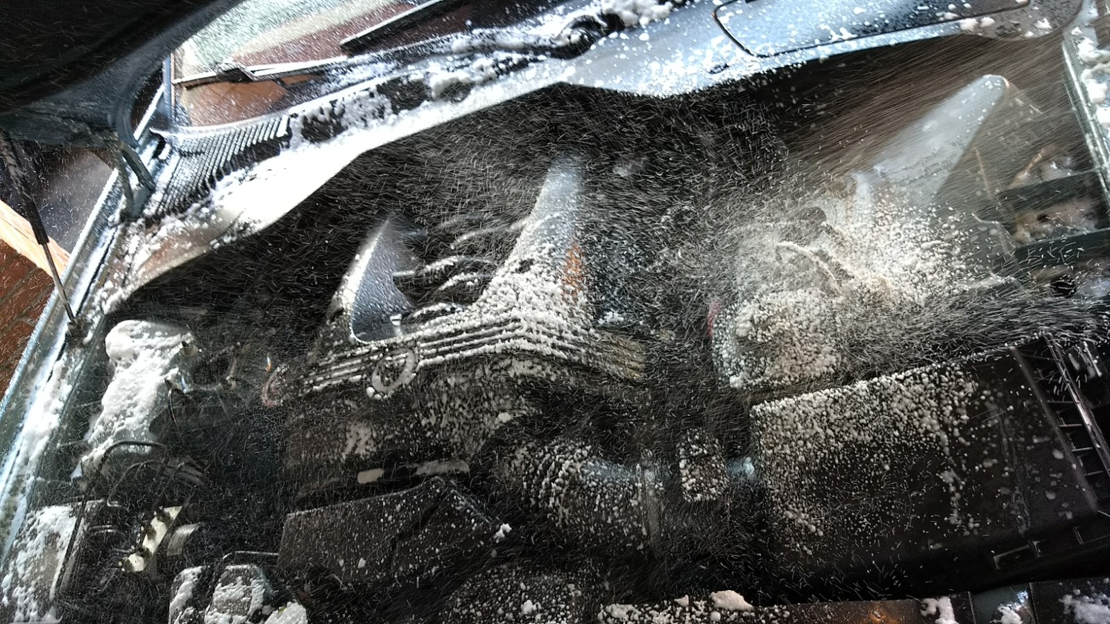 Un buen trabajo. Yo tengo una máquina de vapor, pulveriza vapor. Pulverizo con vapor hasta que queda más o menos mojado y a continuación retiro con microfibra. Al final le paso un trapo con abrillantador de plásticos. Es un sistema igual de efectivo que usando agua, pero le puedo dar sin miedo de mojar conexiones o equipos eléctricos.