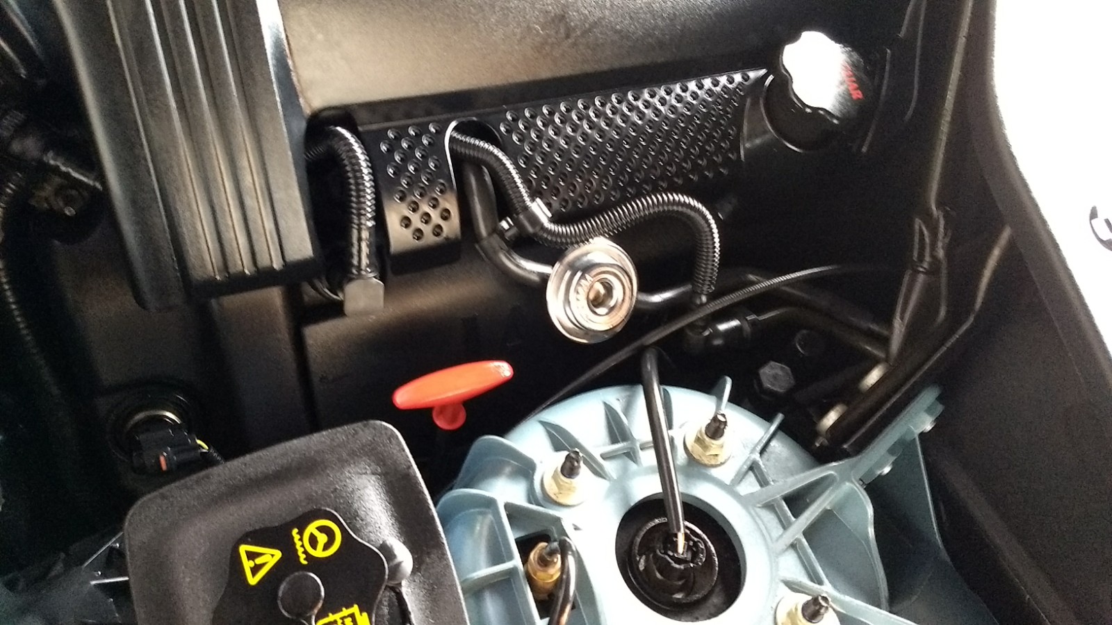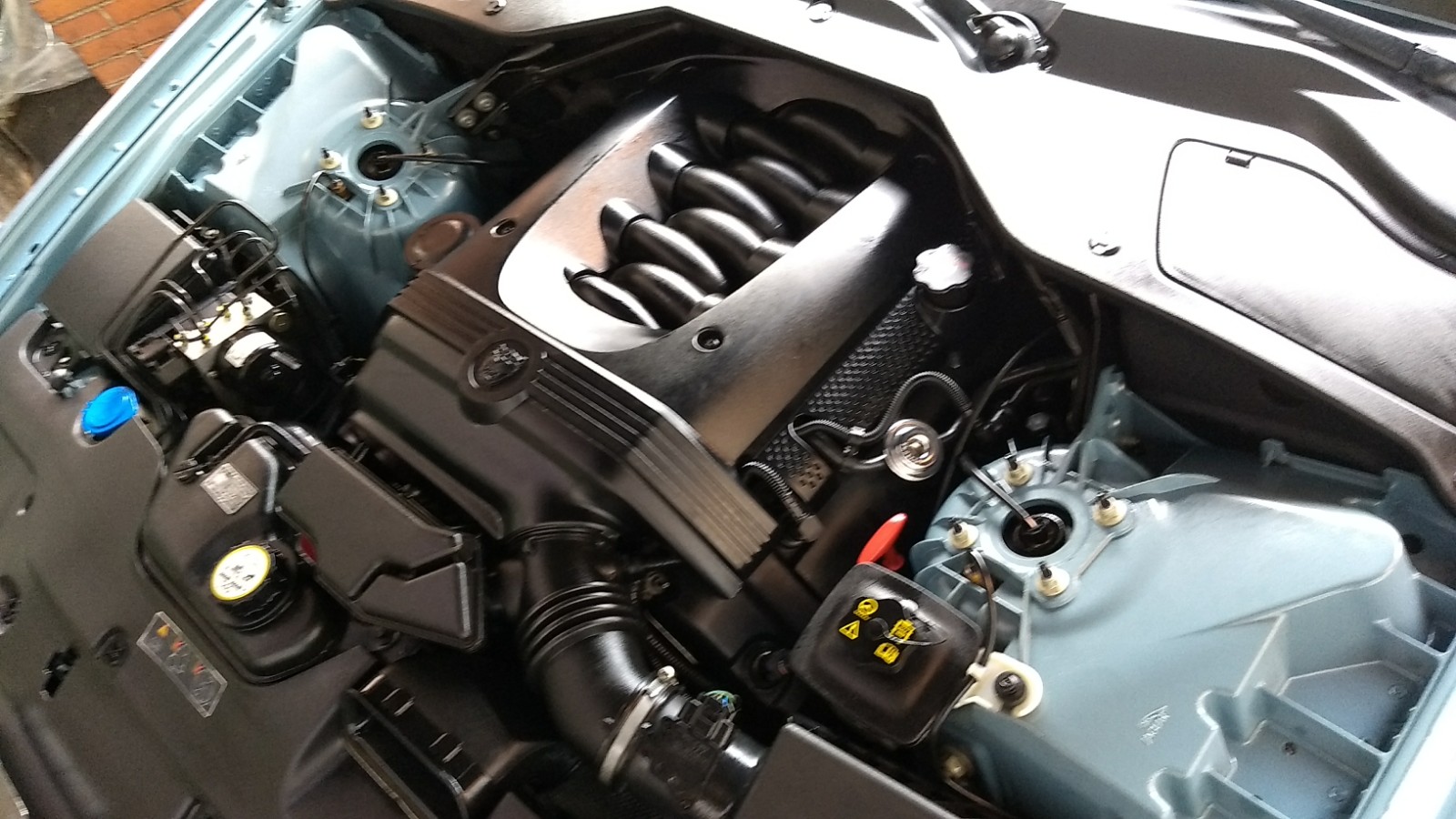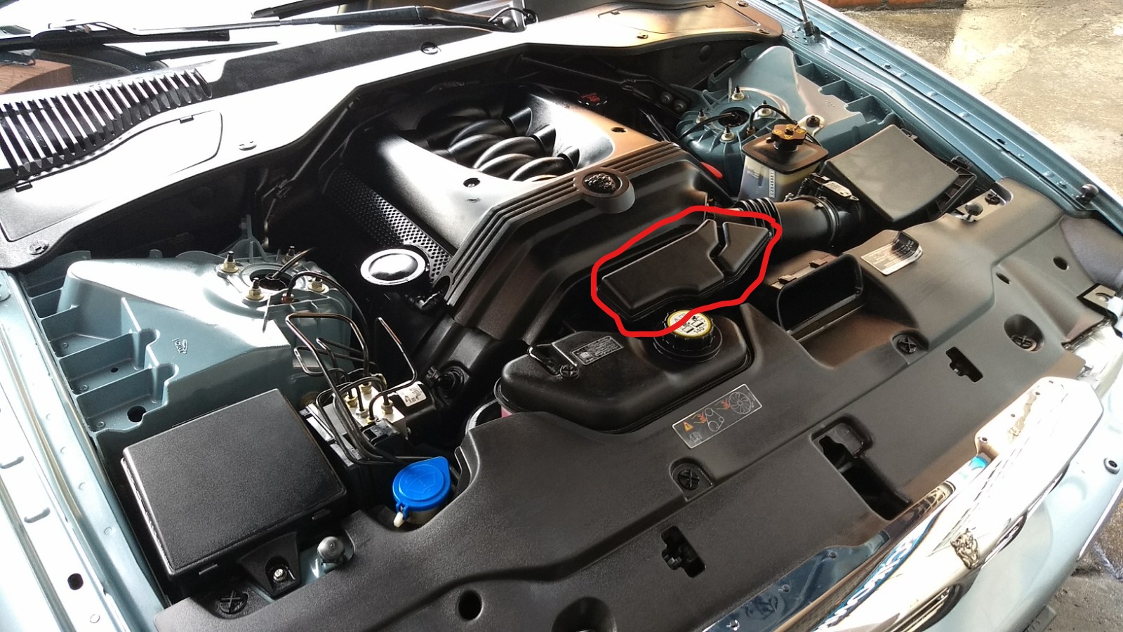 Pablo, tengo entendido que tu Jaguar tiene el motor 3.5, que es prácticamente idéntico a mi 4.2. Pero en las fotos que nos adjuntas veo una tapa de plástico de color azul y otra estructura de plástico negro al lado del depósito de expansión del refrigerante. Me pregunto que deben ser, porque mi motor no los tiene.