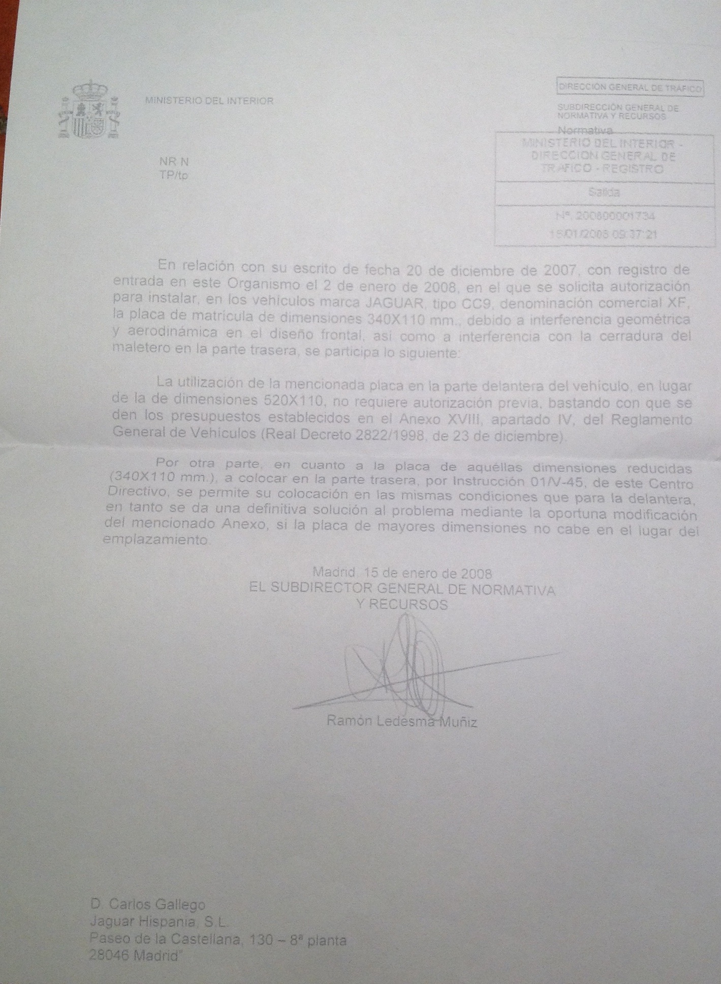 Quería responder a este tema , tengo un xf desde el 2011 y tengo matricula pequeña nunca me han dicho nada, pero por si acaso tengo este documento dentro del coche a ver si os vale, perdonad por la calidad pero no consigo sacar la foto mejor.