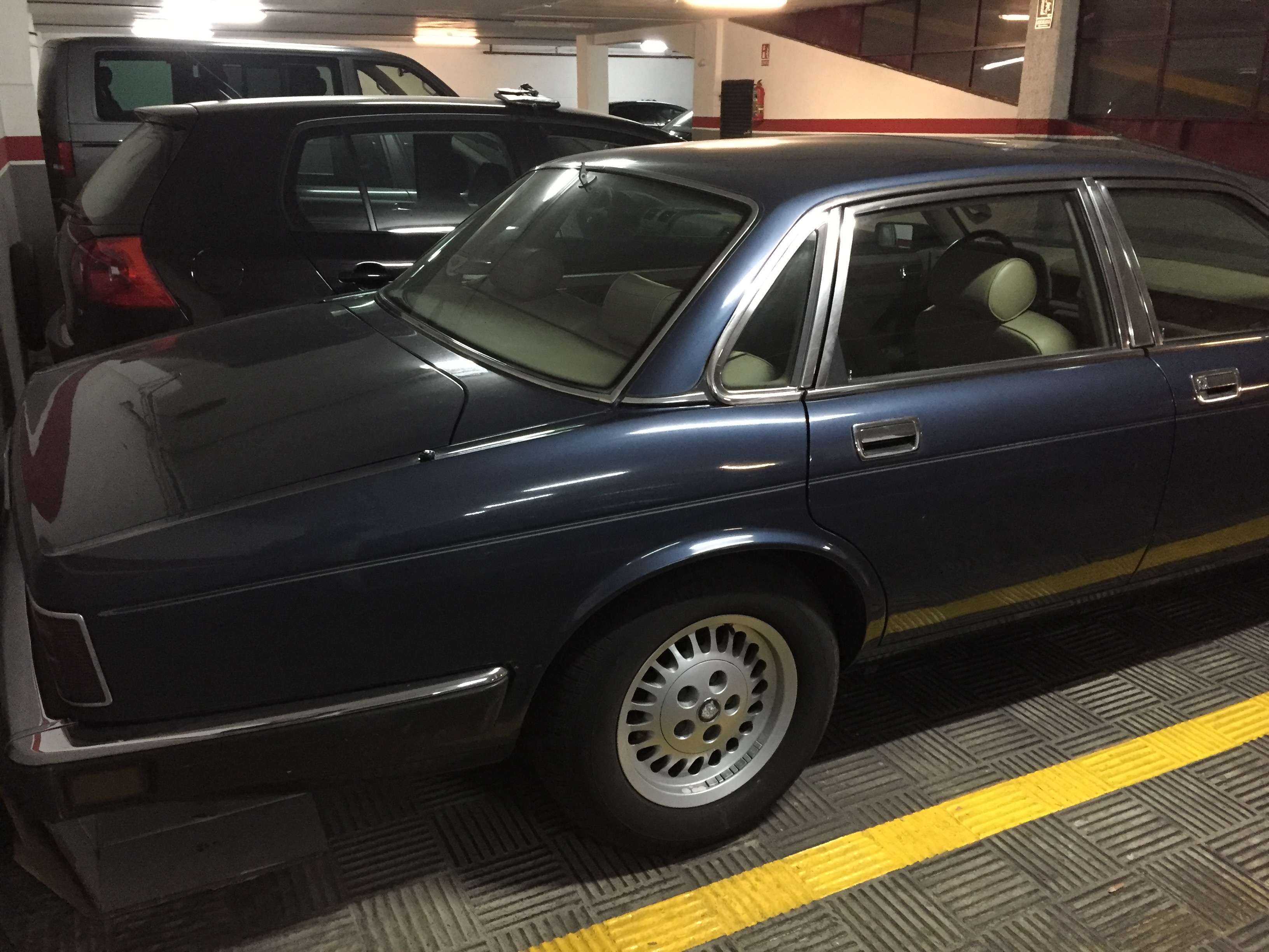 En cuanto me lo compre estuve buscando plaza de garaje cerca de mi casa para dejarlo, me visite todas los sitios disponibles, y en casi todos era prácticamente imposible dejar el Jaguar. Por fin encontré este sitio y después de probar en tres plazas creo que encontré la horma de su zapato! Y si! Llena toooda la plaza!