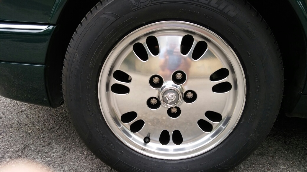Sobre las ruedas, simplemente decir que compré de un desguace de Murcia (Vegamedia creo que se llamaba) unas llantas kiwi de otro XJ6 equivalente, y que las llevé a pulir y pintar (por dentro las he pintado de negro). Unos 390€ las 4 llantas con portes, y algo menos de 300€ la pintura y puesta a punto de las llantas.