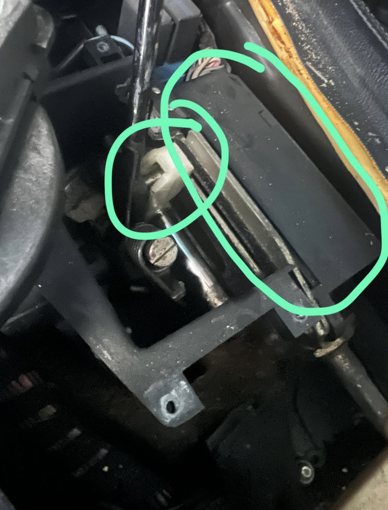 Lo que falla es una especie de sensor que va junto a la palanca en el lado derecho, lo llaman “linear switch” en los foros ingleses. Al mover la palanca, mueve otra pieza por un carril que es la que va indicando al coche en que posición está la palanca.