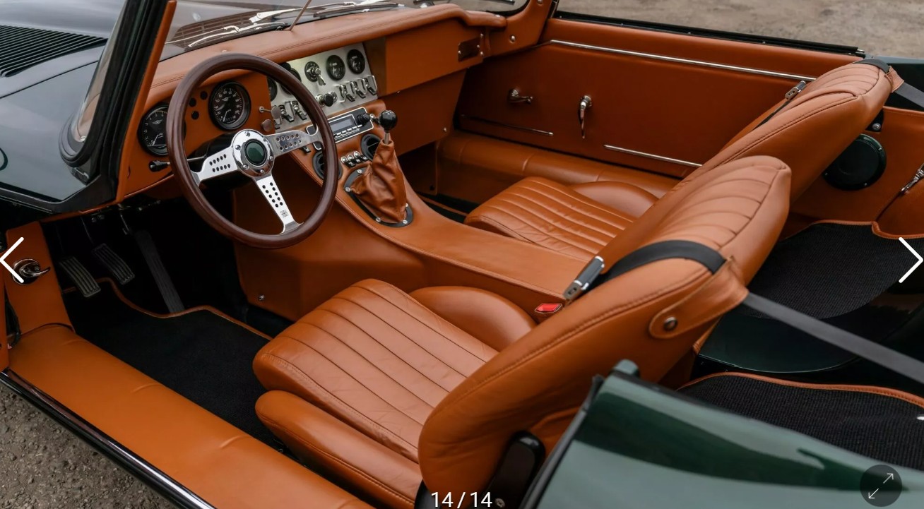Las modificaciones no terminan ahí . Se ha añadido una suspensión completamente nueva con altura y amortiguación ajustables. También hay una nueva cremallera de dirección, pinzas de freno delanteras de seis pistones y traseras de cuatro pistones, y rines de alambre Turrino de 15 pulgadas con neumáticos Pirelli.Luego está el habitáculo. Al restaurar y modificar clásicos, a las empresas les resulta fácil añadir pantallas, instalar cuero nuevo y listo. ECD no lo ha hecho, sino que se ha asegurado de que el habitáculo se sienta como el original, aunque más lujoso. Luce asientos personalizados con acabado en cuero Spinneybeck Lucente Hercules. También cuenta con un tablero de aluminio cepillado con indicadores y palancas clásicas. Se siente auténtico porque lo es, solo que mejor.Los toques modernos están presentes si los buscas. El E-Type GTO está equipado con un sistema de audio Bluetooth, faros automáticos y cierres eléctricos, pero todos están ocultos, lo que ayuda a recuperar la sensación clásica de este gran coche de los años 60 .