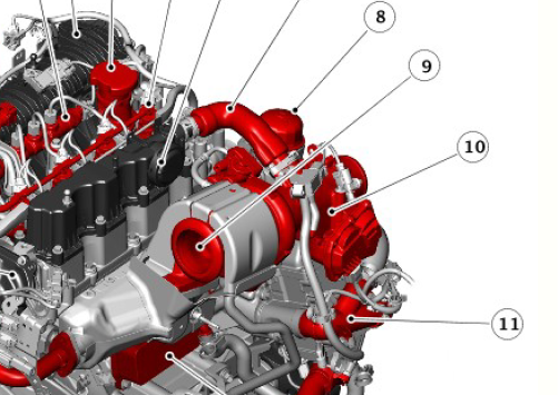 La pieza a la que haces referencia, creo que son los Nº 3 y 9 de ambas fotos llamada Turbo Compresor Variable, la Nº 10 de la foto J1 es la Válvula EGR de baja presión.