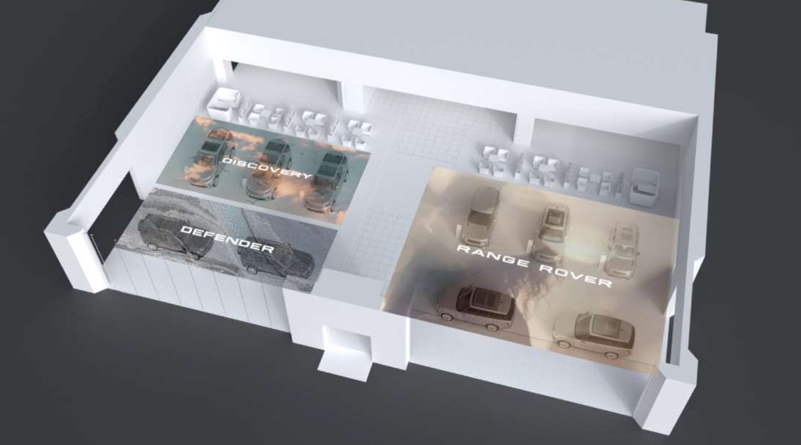 Las salas de exhibición de JLR están configuradas para dividirse en cuatro secciones distintas que venden las diferentes marcas, y muchas perderán a Jaguar por completo.