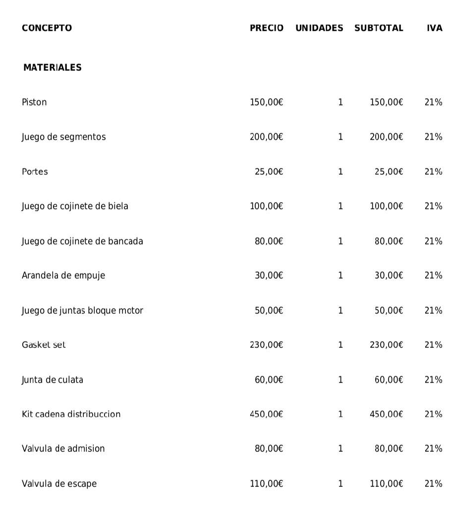 Después de varios días buscando y y hablando con torneros pues al final encontré dos y me decidí por el más cercano que está en el centro de la capi , le pedí presupuesto y después de tres días pues no me lo dio estaba está tan atareado y tanto trabajo aunque tiene un oficinista pero la llamada de trabajo la coge el personalmente hablé con él cuando ya lo tenía desmontado y me dijo que hasta a la semana que viene no me los no se lo llevara le dije oye lo tengo aquí y oye dijo bueno tráemelo y así ya probé no lo tienes en cola pero ya sabes que hasta el lunes o el martes no no lo toco bueno pues lo lo llevé y es un taller pequeñito pero solamente se dedica a reparar motores no estos cualquiera de la página pone que el el 204 DTD pero la repara todos se lo deje y el lunes o el martes me dirá el presupuesto