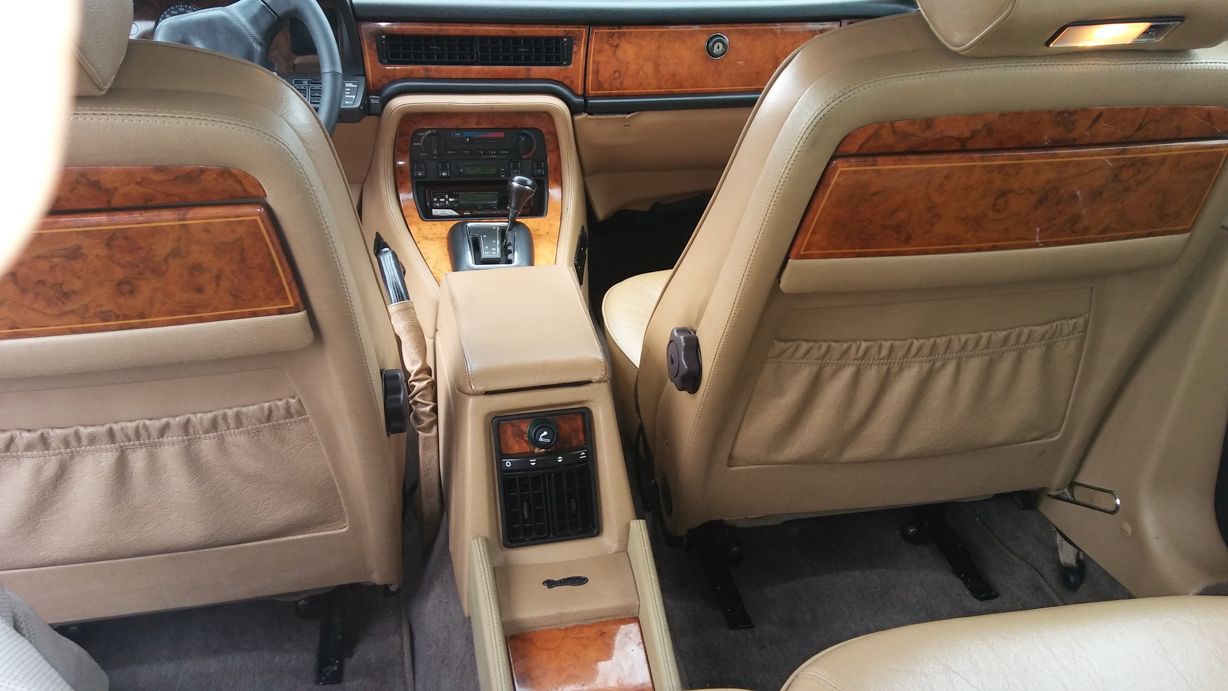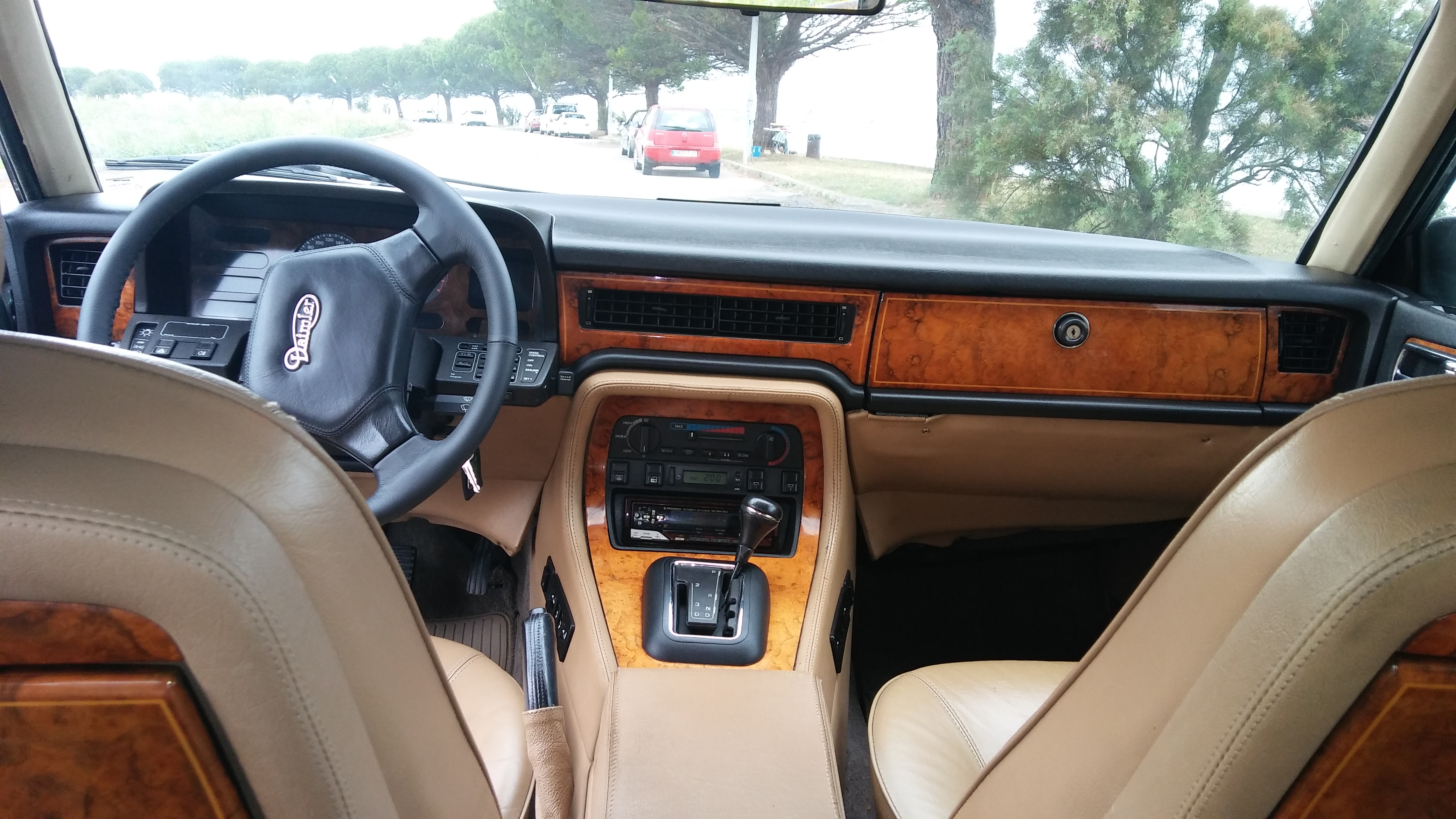 El coche tiene el equipamiento más completo que puede haber pues es el acabado Daimler, con butacas traseras, asientos calefactables, control de crucero, techo eléctrico, ABS, luces de cortesía traseras y delanteras, mesillas traseras de madera, etc, y desconectador de batería (porque no le uso mucho)
