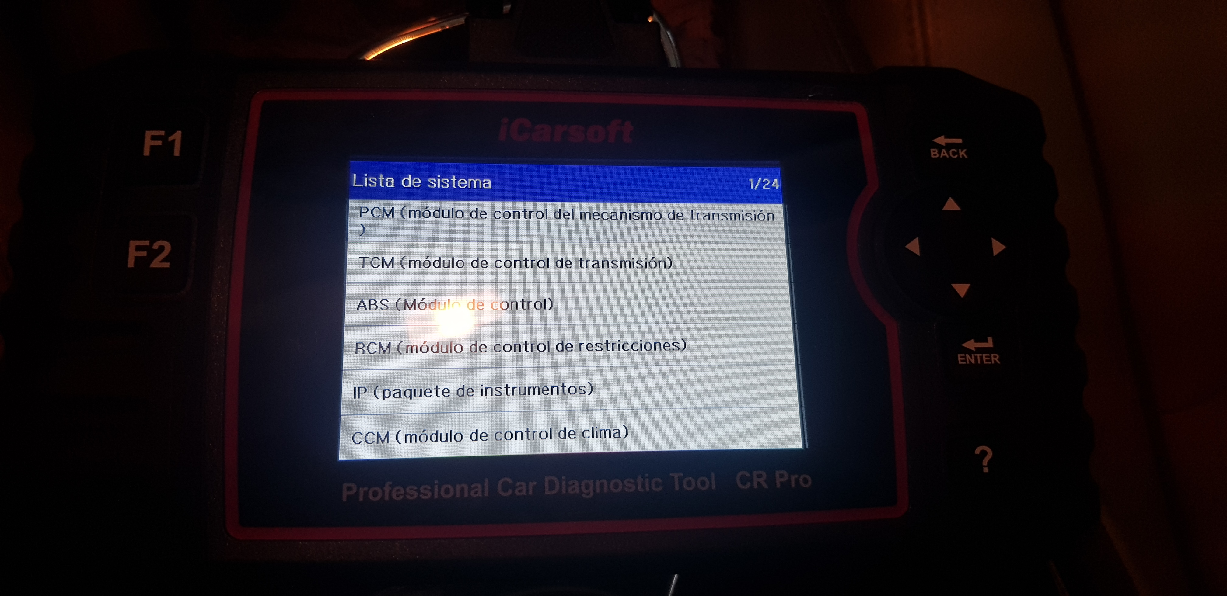 Me detecta un total de 24 módulos, envió fotos del pantallazo de los módulos tal cual aparecen en la máquina de diagnosis.